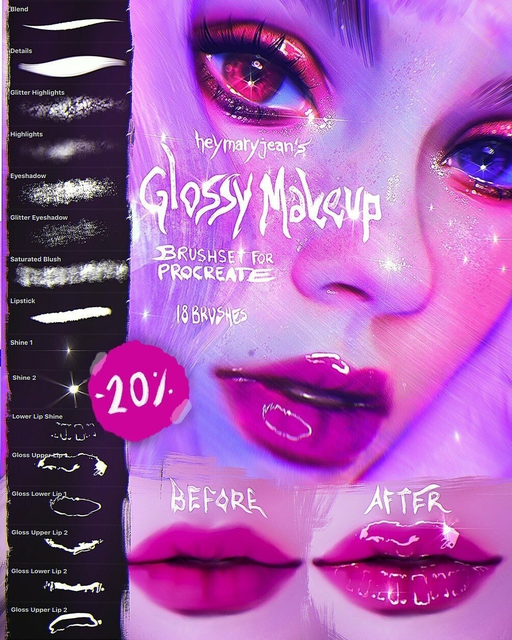 Save 30% on this 3 brushpacks, including glitter brushes, hair brushes and makeup brushes. 43 brushes in total. Free sketchbrush is included.